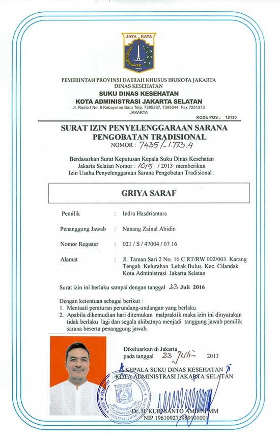 Izin Penyelenggaraan Sarana Pengobatan Tradisional.